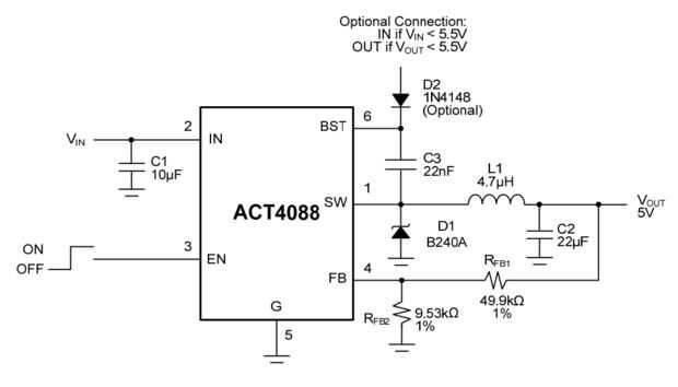 Así que con cualquier proyecto de creación de prototipos esto realmente no debería ser el primer paso... Pero vamos a seguir adelante y hacerlo cuz es tan rematadamente divertido! Una pequeña revelación, usaremos el ACT4088 porque es barato y tiene una VOut ajustable junto con un máximo de 1,5 a. Por supuesto si necesita diferentes características, lo más probable es, hay un chip para usted! El circuito que construiremos se toma directamente de la hoja de datos de IC y funciona muy bien!