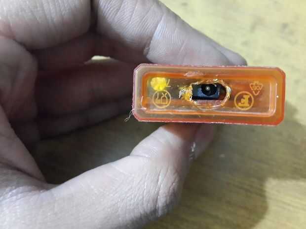 Ahora ajuste el chip en una caja de dulces y hacer agujero en el extremo de la caja de entrada.