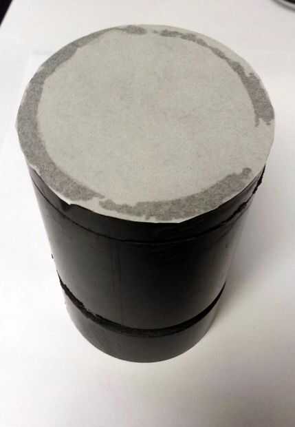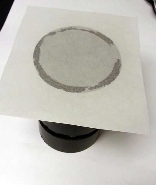 2. Coloque un cuadrado de papel vitela de papel sobre el extremo del tubo y de la prensa en el pegamento y deje establecido.