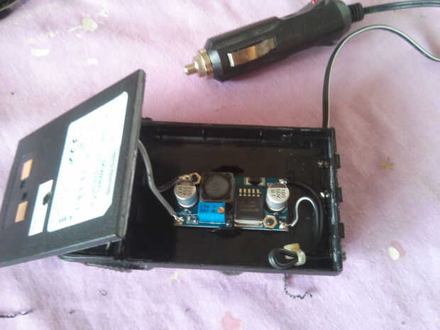 Siguiente trabajo fue el regulador del alambre del enchufe del alumbrador del cigarrillo 12V y la tensión de las almohadillas de contacto de la cubierta de la batería. He utilizado un encendedor de cigarrillos de 12V con fusible en el caso de un cortocircuito eléctrico en el regulador o el cableado y ya que es lo que tenía en mano.