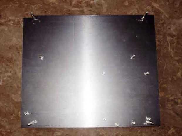 Para facilitar la construcción, quería que todo montado en una placa común. Opté por un 12 "x 24" 22Ga. hoja de acero. Para los sujetadores me decidí por hardware 4-40, como los donuts de la tierra en todo lo que en este portátil tiene 4 agujeros calibre (figura ir) y 4-40 hardware estaba disponible localmente. Permítanme decir para el registro de que realmente, realmente, realmente deseo que pude encontrar 4-40 varilla roscada o una varilla carnosa con 4-40 roscados extremos. Realmente, realmente desea. Para obtener la altura necesaria en la pantalla LCD, terminé enhebrar seis 4-40 tornillos niveladores to end, como se verá aquí en un minuto. Se trata de un situación ideal y probablemente tenga que comprar algunos tubos de aluminio para ir alrededor de los tornillos para reforzar en algún momento. Por ahora funcionan, pero no es absolutamente a prueba de balas lo suficiente para mi gusto. (Tiendo a ser extremadamente duro en las cosas, hasta el punto que yo he conocido a destornillador maneja fuera de sus ejes de giro).