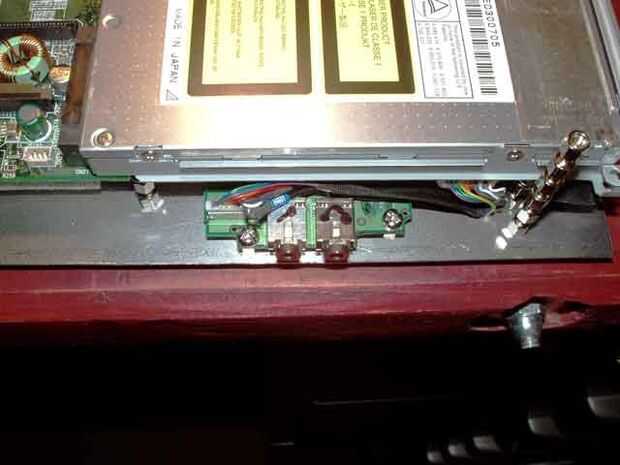 El cableado de par trenzado color ha sido soldado en lugar de la original botón de encendido, LED de encendido y LED de actividad de lector de tarjeta. Otra vez, UTFSE para técnicas de soldadura SMT.