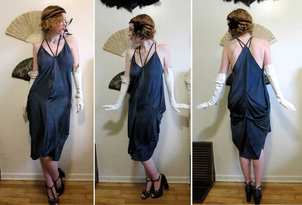 ¿Necesita un disfraz de última hora? Todo lo que necesita es tres pañuelos cuadrados y habilidades básicas de costura y puede tener usted un hermoso (y bastante históricamente exacta) de 1920 estilo vestido una tarde fácil! Añadir unos guantes, una larga hebra de perlas y una pluma o dos para su pelo, y es tiempo de aleta!