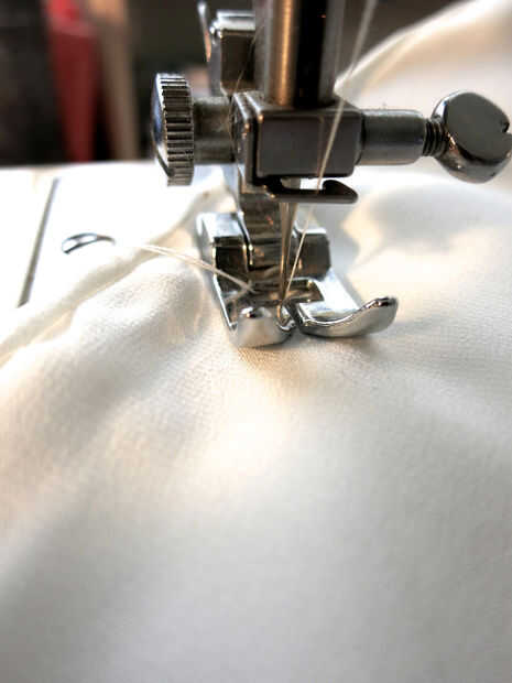 Cosa una costura por la marca del lápiz, utilizando una puntada recta. Asegúrese de pespunte al principio y al final de la costura para anclar sus hilos. Ahora tienes la costura central de su vestido, que será en el frente!