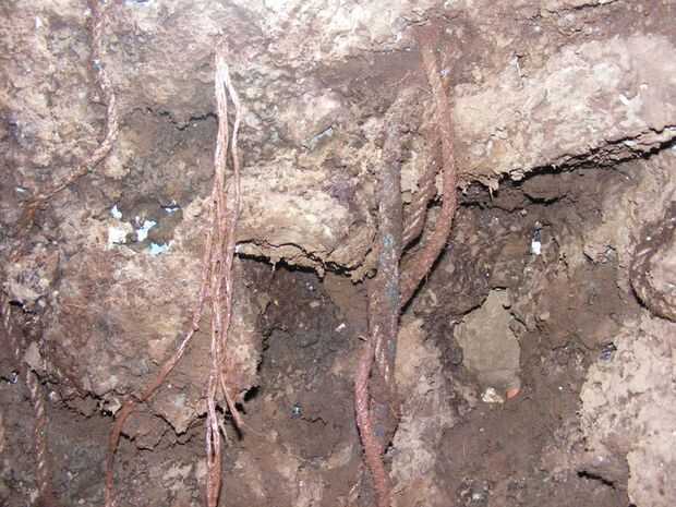 Es una de las cosas hermosas que agregarán un toque naturalistico en el vivero son las raíces caídas y suspensión o raíces del aire de secado... para hacer esto que necesitamos algunas cuerdas y cadena de hilo que fabrican de plástico, he usado varios tipos con varios anchos, acaba de hacer un cubo lleno de la misma consola de mezcla, pero sin el musgo beat y estas cuerdas dentro del fregadero, después de calcular la longitud necesaria, tomar en la consideración que se ser retorcida para imitar el entorno real.