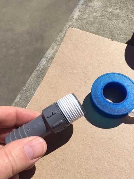 5. Envuelva las roscas del conector de manguera con la cinta de fontaneros blanco