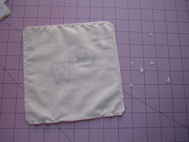 Recortar las esquinas de la pieza cosida y luego gire derecha hacia fuera, empujando las esquinas como mejor puede.