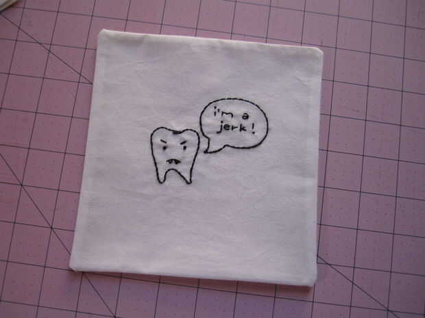 Una vez que es agradable y plana (hierro si es necesario!) Pespuntear alrededor de los bordes de los bordados para cerrar la abertura y que se vea bonito. Intente utilizar un margen muy pequeño para esto - 1/8 de pulgada o menos.