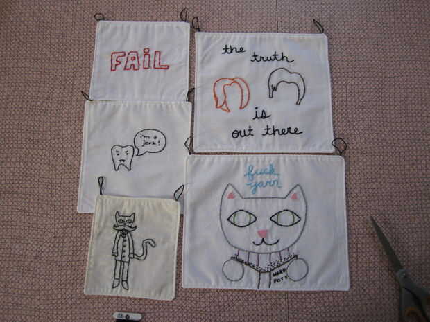 Decidí hacer dos pequeños lazos en estos, pero creo que enhebrar el hilo de esquina a esquina podría ser un aspecto más agradable.