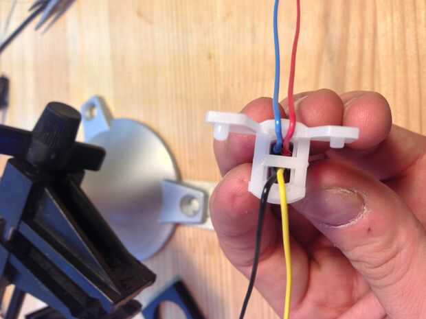 Deslice los cables del LED a través de los agujeros. Hice dos cables.