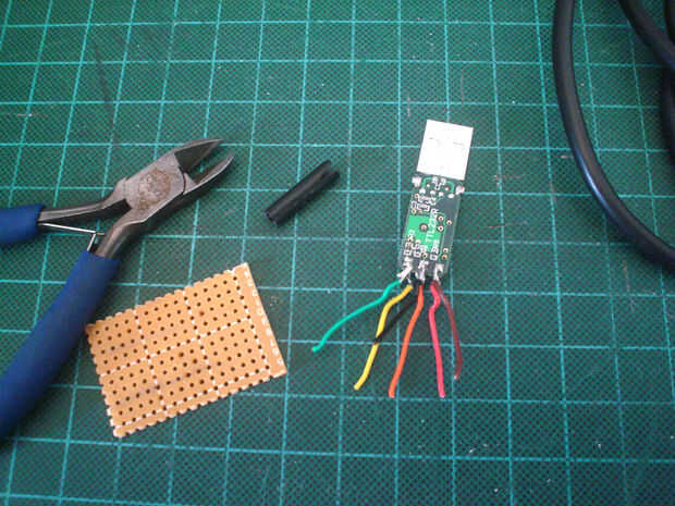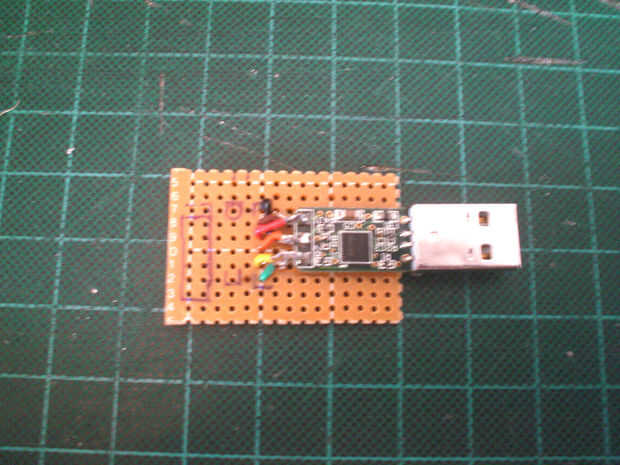 Corte de la cinta de doble cara espuma de dos piezas pequeñas y pegarlas debajo de la PCB de FTDI.