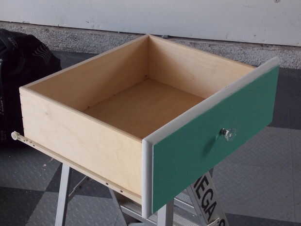 Esta es una idea mi esposa tuvo que lidiar con la falta de almacenamiento de información. Acaba de tomar una vieja mesita de noche quitó uno de los cajones y las convirtió en una pequeña estantería.