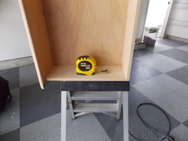 Tras el lijado se hace tiempo para medir hacia fuera de la plataforma esto es bastante autoexplicativo. Sólo medir el interior longitud y profundidad de cajón y tendrá las dimensiones de la plataforma.