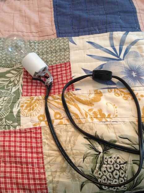 Encuentra una vieja lámpara (utiliza una lámpara de lava) y usando cualquier medio necesario, saque las piezas eléctricas sin dañarlos. Probablemente podría ir a comprar estas piezas, pero ¿qué es la diversión en eso?