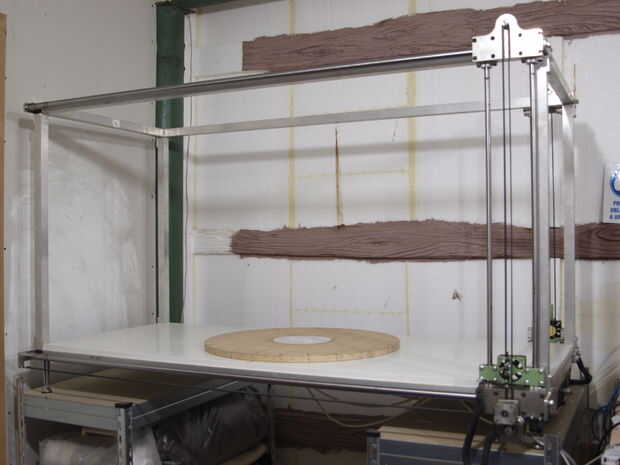 Ahora que tuve mis patrones preparados. Lo que no tengo fue una mesa de torneado para mi cnc de corte de espuma, así que tuve que hacer uno. No era tan difícil. Sólo cortar un círculo de un polywood e hizo un agujero en el centro. También hice un agujero similar en el centro de mi mesa de cnc de corte de espuma, luego me uní a ellos con un tornillo apropiado para él a girar suavemente. Lo único que falta en la mesa de giro era las marcas de los grados así que imprimí un círculo con el patrón adecuado.