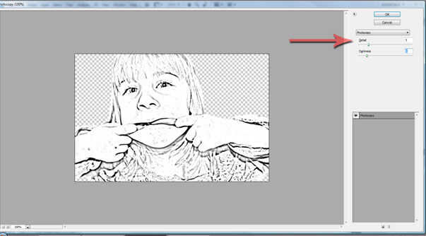 Esto es donde usted puede parar si quieres hacer una página para colorear. Si quieres hacer una página para colorear ir a capa -> nueva capa de ajuste -> niveles y ajustar las flechas primeras y últimas bajo el gráfico hasta alcanza el aspecto deseado.