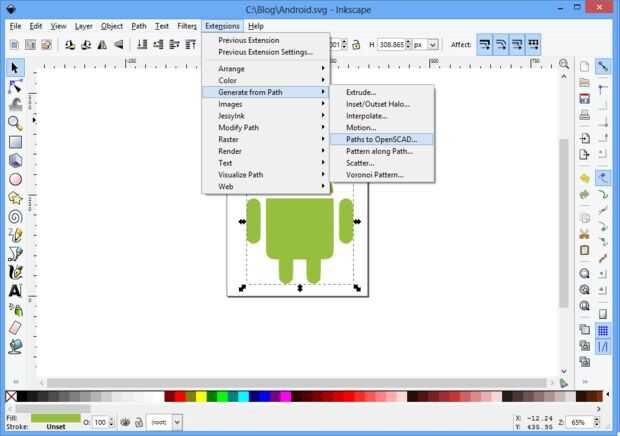 Ir al menú, seleccione "Generar de trayectorias" -> "Caminos a OpenSCAD"