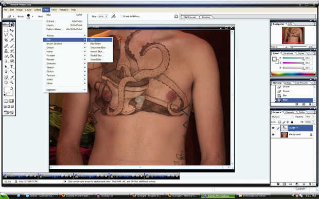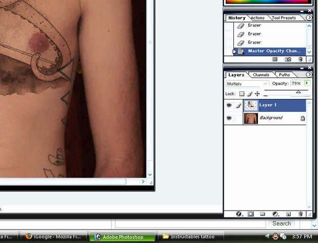 También decidí suavizar los bordes del tatuaje ajustando la opacidad de herramientas borrador a alrededor del 50% y poco a poco borrado a algunos de los bordes del extremo del tatuaje capa en varios trazos.