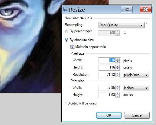Si eres un principiante, empezar con poco. Ser consciente de la "cuenta" de su tejido. La baja la cuenta, cuanto más grande la imagen. 14 puntadas por pulgadas es común de aida, pero usted puede conseguir tan alto como 32 puntadas por pulgada de tela de punto de Cruz. Planea hacer de este uno en tela cuenta 14 y quieren que sea de 15 pulgadas de ancho, por lo que cambia el tamaño la imagen en 210 píxeles. Asegúrese de seleccionar "la mejor calidad" cuando cambie el tamaño, o puede obtener cierta distorsión no deseado.