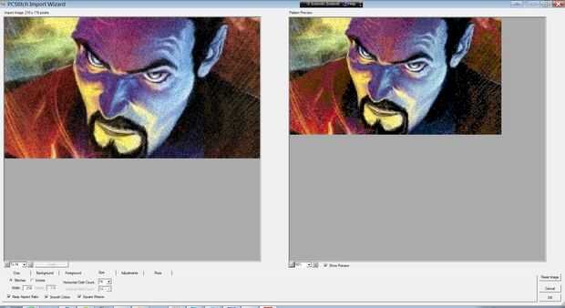 Al importar la imagen, asegúrese de que el tamaño del patrón coincide exactamente con las dimensiones. Algunos programas por defecto a 100 píxeles, así que asegúrese antes de confirmar la importación. En algunos programas, puede ajustar la cantidad de hilo que se utiliza así. Me gusta establece como alta como sea posible, pero si usted está empezando, puede que desee hacerlo un poco más. Dependiendo de su patrón, usted podría terminar usando más de 200 diferentes colores de hilo.