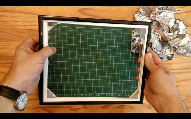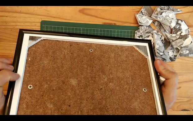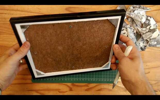 Vuelva a colocar el forro de madera en lugar en el marco de la foto, asegurándose de que es la manera correcta para arriba si es un nuevo soporte.