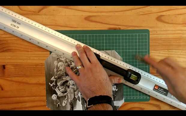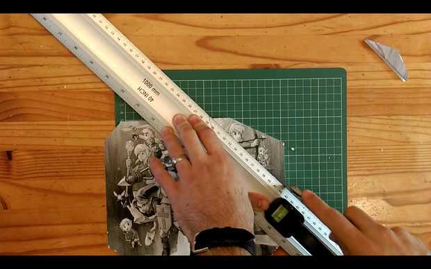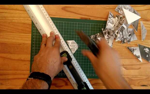 Usando la regla y el cuchillo, cortar tu foto en tantas piezas como quieras.