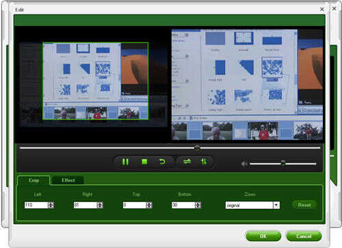 Step2. Edición de WMV para video webElegir un WMV fie que desea editar, haga clic en "Editar" para abrir las ventanas de edición. Puede establecer los parámetros de cultivos a deshacerse de los lados negro y cambiar el video brillante, contraste, saturación.
