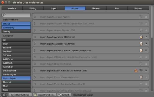 - Ir a archivo > Preferencias de usuario > Addon > importación y exportación > casilla de verificación Export autocad dxf formato. cierre el cuadro de diálogo