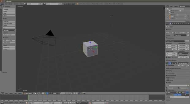 Iniciar blender, se muestra un cubo una cámara y una fuente de luz, presione a para seleccionar todos y 'x' para eliminarlo.