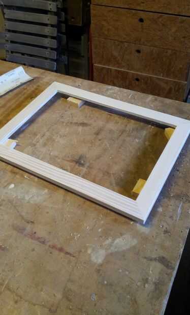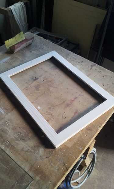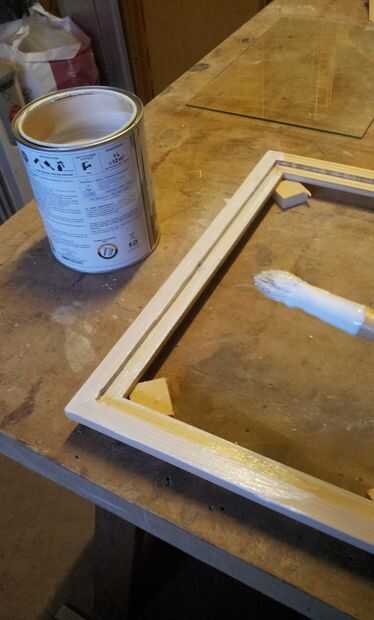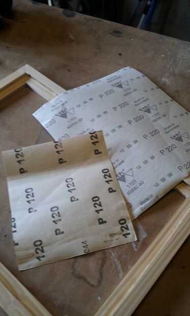 Antes de aplicar el tinte lijar el marco entero con lija de grano 120 y 220. Apliqué en total 3 capas de tintura, cada 3 horas después de la anterior. Finalmente dejó el marco seco durante la noche y alisaron el colorante sobrante con lija de 480 a la mañana siguiente.