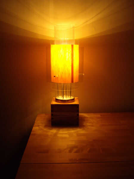 La simple adición de una chapa de madera finas como el papel de resolver esos problemas, ocultando los defectos acrílico y crear un ambiente cálido, suave resplandor de la luz de la lámpara.
