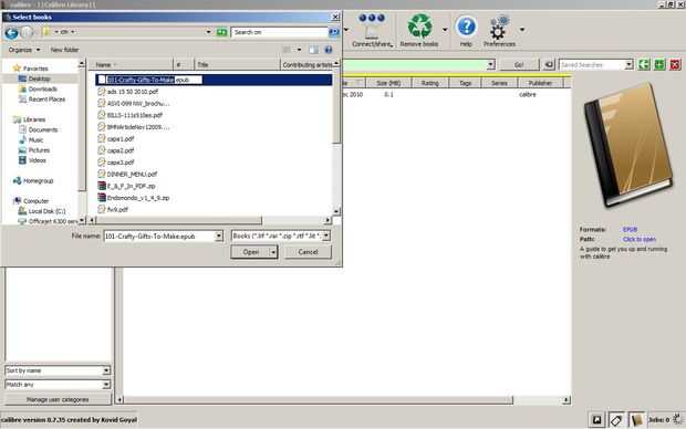 Y es ya en funcionamiento. Ir a añadir "Añadir libros" y navegar hasta donde has descargado el ebook Instructable (u otro).
