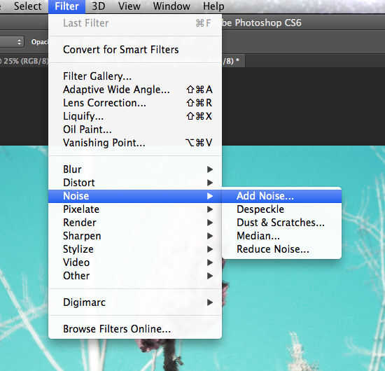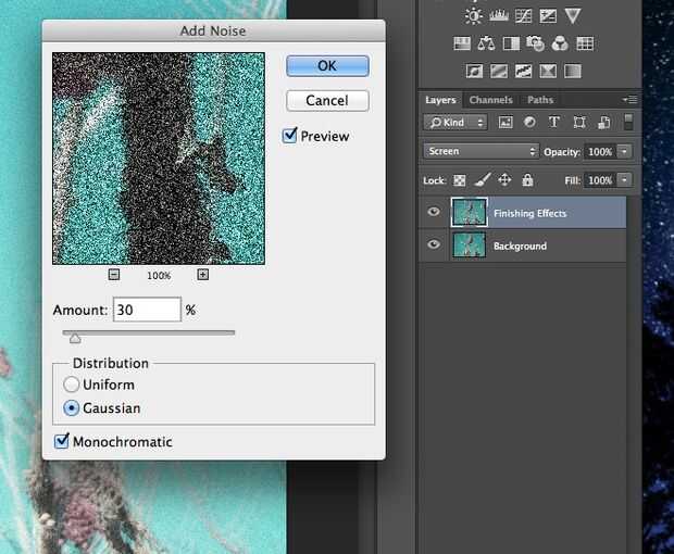 • Añadir tanto ruido como gusta a la foto. Se reduce la opacidad de esta capa, por lo que puede añadir más de lo que piensas que necesitas.