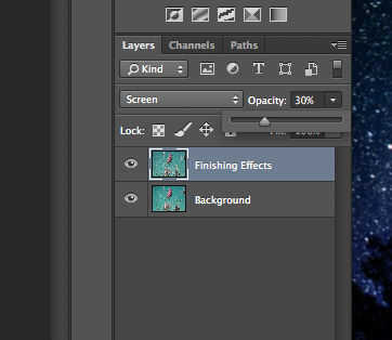 • Asegúrese de que está seleccionada la capa adecuada y reducir la opacidad al porcentaje que más te guste. Para esta foto yo no quiere demasiado, así que fui al 30% pero deja más opaco.
