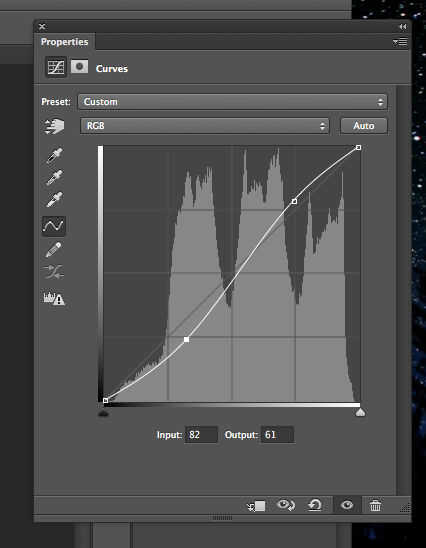 • Ir a capa > nueva capa de ajuste > curvas. En el cuadro de diálogo podemos añadir contraste a la imagen moviendo la línea en el gráfico cerca del extremo blanco (derecha) y hacia abajo hacia el negro final (izquierda), la creación de una ' curva. Ajustarlo a tu gusto.