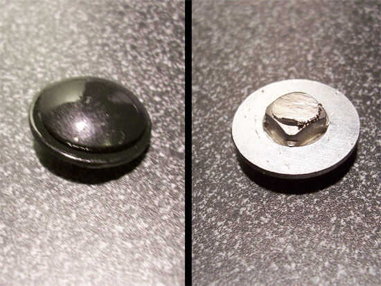 Esto podría ser un buen momento para averiguar algo de ese agujero el cableado viejo solía ir a través. Utilizar una arandela y la cabeza de un perno para hacer un gorro y ajustaron en allí. Pero esto es puramente cosmético y sin importancia.