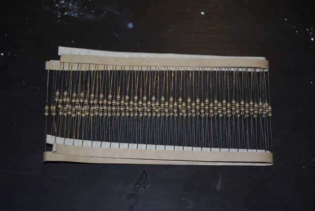 Soldado en mi resistencias primero. Relleno de los resistores de 4 en la parte trasera. El PCB está marcado donde van. Después de rellenar en les de la soldadura y acortar los conductores.