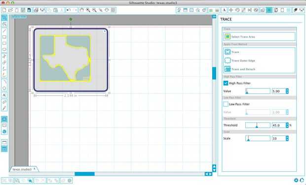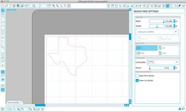 Ahora es el momento para recortar la forma que vas a utilizar como plantilla. Ya que era cumpleaños de mi amiga decidí hacerla un par de pendientes de Texas desde shes de Austin. Así que arranqué Silhouette Cameo de mi hermana, que es una máquina de corte automática. Encontrar un vector de Texas y abrió en mi programa de estudio de la silueta. Después de un poco de tweeking tuve Silhouette Cameo de mi hermana corta un pedazo de cartulina en forma de Tejas. Ahora cuando usted fuego PMC3 reduce unos 12-14% así que asegúrate de esto compensará el tamaño de la plantilla de cartulina.