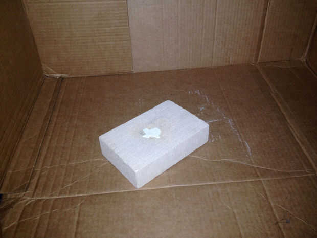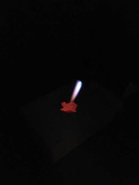 Su tiempo a la arcilla de pmc. Coloque una de sus piezas en el ladrillo de fuego y asegúrese de que la antorcha del butano es completa. Prepárate un temporizador y situado a 10 min Grab un cuenco de agua y coloque en el lado para enfriamiento de la pieza después de su cocido. Para estar seguro por favor asegúrese de su en un área bien ventilada para evitar humo construir hacia arriba. Puse un cartón bajo el ladrillo de fuego para seguridad y luego baje las luces. Encender la antorcha y comenzar a disparar la pieza. Me gusta la antorcha en un movimiento circular para asegurarse de que la pieza se cuece uniformemente. Después de unos segundos que se incendiara la pieza, no se alarme ya que esta es solo la carpeta orgánica quemando.
