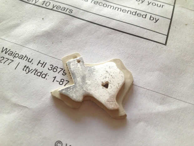 Una vez que el fuego ha disminuido iniciar el temporizador. El pmc debe mantenerse por encima de cierta temperatura todo el tiempo. Usted querrá mantener el color alrededor de un melocotón en tono cerezo. En un momento la arcilla podría empezar a rizar un poco, justo a la llama de la pieza durante unos segundos. Asegúrese de mantener el movimiento circular constante y la temperatura hasta que el temporizador se apaga. Después el temporizador de 10 minutos con cuidado coger la pieza con unas pinzas y colóquelo en el recipiente de agua. Lo dejo ahí un rato mientras que limpia encima de mi estación de trabajo. Cuando usted tira de la pieza se dará cuenta de su tipo de color calizo y por supuesto la contracción es evidente.