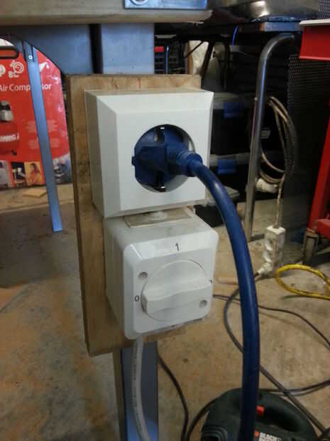 Ahora Conecte el círculo a la toma de corriente de tabla y puede utilizar el conmutador rotativo a la Sierra de encender y apagar.