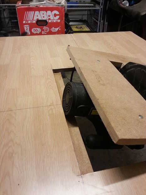 Prueba el panel de madera con la tabla... para mí me enteré que no cupo la Sierra de mano,