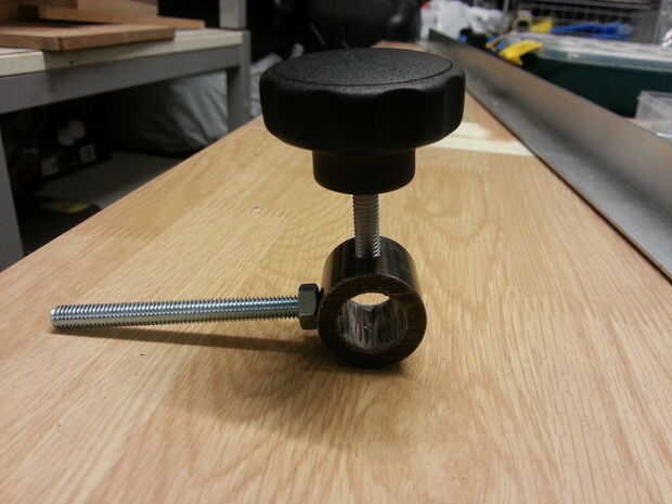 Utilizar cualquier tipo de tornillo que se desea como un botón de bloqueo. (Utilicé viejos pies nivelador de mesa)