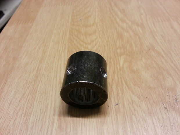 Perforar 2 orificios en el soporte 90 grados alejados uno del otro, luego utilizar un grifo roscado para hacerlos rosca.