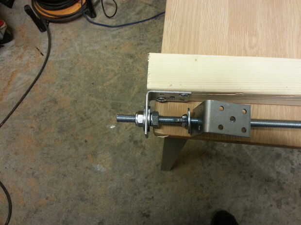 Sujete la varilla roscada a los soportes con tuercas de seguridad... (Esto era una parte dura, como las tuercas de seguridad era muy difícil trabajar con).