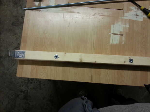 Perfore 2 agujeros en la madera y luego medir nuevamente y 2 otros agujeros en el marco de la tabla.