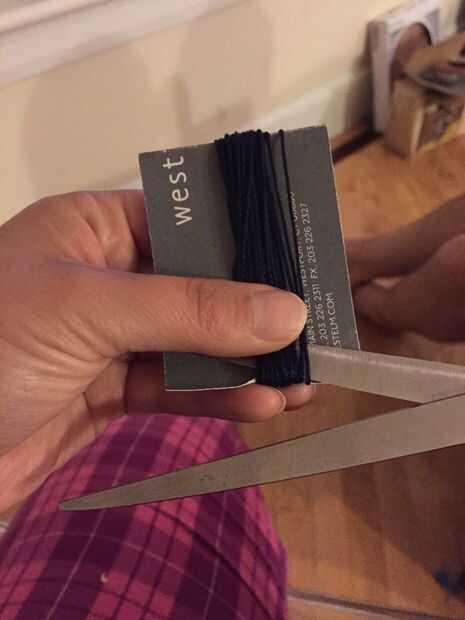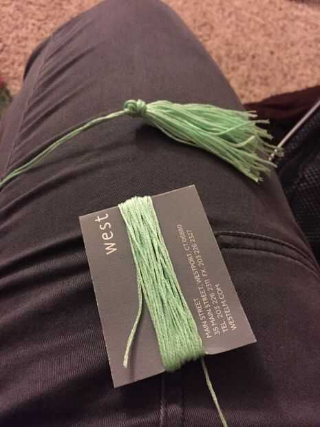 Para hacer mis borlas, compré hilo de bordar en mi colores deseados. Hay un montón de tutoriales para borlas en línea, pero básicamente sólo necesitas un trozo de cartulina o cartón (yo usé una tarjeta de visita que no necesitaba) cortado a la altura deseada. Doblé mi tarjeta para que la altura era de 1 3/4". Dejar reposar unos 8" en el hilo. Entonces Envuelva el hilo o seda dental alrededor de la pieza de acción tantas veces como decida se ve bien (lo hice 30 vueltas) y corte a través de todo el hilo en el borde inferior de la cartulina. Asegúrese de que usted mantenga el paquete de hilo! Doble 8" hilo apartar por la mitad. Coloque el paquete de hilos sobre 8" pieza, así que hacen una cruz. Ponga los extremos de los 8" pieza sobre el paquete y a través del lazo. Tire del lazo de 8" pieza sobre los paquetes de como doblarlas por la mitad. Estire todo el asunto. Es la misma idea que colocar dos bandas de goma. Si su paquete no es ni siquiera, hacer las paces con eso, o usar tijeras para darle un corte de pelo. Usted va a mejorar en esto como vas.