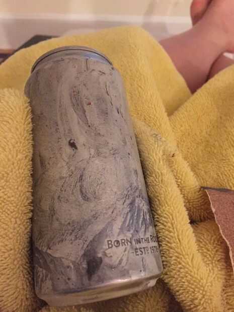 Así que, coge una toalla vieja, un helado puede, papel de arena de grano 120 y obtener cómodos frente al televisor. En retrospectiva, latas de Coors son una mala elección cuando tienes a la arena, porque es más difícil saber si han lijado lo suficiente en las piezas de plata. Sin embargo, pronto aprenderá a identificar la arena contra la parte no lijada por la textura.