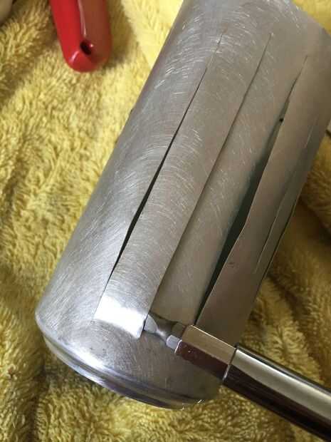 Después de 120, también pegué las latas con grano 180. Estaba preocupada acerca de todas las marcas cero obvio, pero no creo que los 180 hace una gran diferencia, y el primer metal limpia cubre los arañazos hasta.