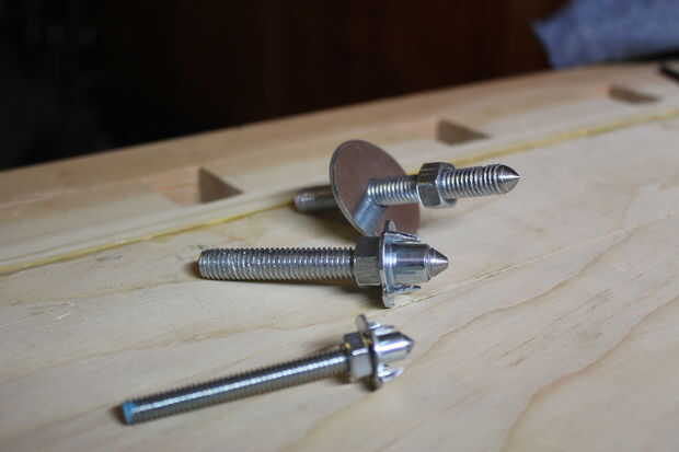 Tornos reales tienen tiradas de lujo y varios accesorios para sujetar diferentes objetos en su lugar. Vamos a utilizar algunos hardware simple que se puede montar en el mandril de taladro de columna existentes y en la mesa de trabajo de taladro. Costo total del hardware (incluyendo algunas piezas experimentales, como tuercas de mariposa y como demasiado tirante) era alrededor $10.